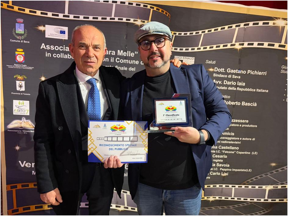 A premiare il regista sono stati il sindaco di Sava Gaetano Pichierri e il presidente dell’associazione Gaetano Leo. Durante il suo intervento, il vincitore ha dedicato il premio ai giovani, all’amicizia e al valore del cinema come strumento di consapevolezza sociale, sottolineando come «il cinema possa diventare un mezzo potente per combattere la violenza e le discriminazioni».