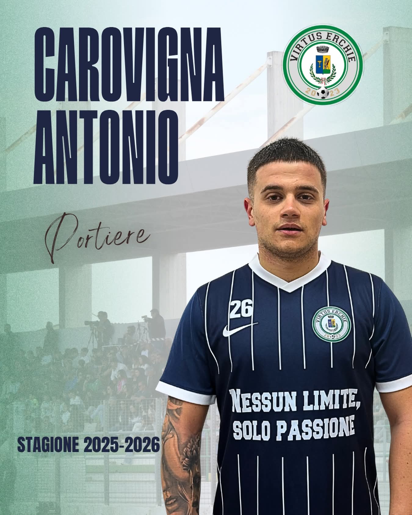 La società ASD Virtus Erchie annuncia l’arrivo di Antonio Carovigna, portiere che difenderà i pali grigioverdi nella stagione 2025/26.