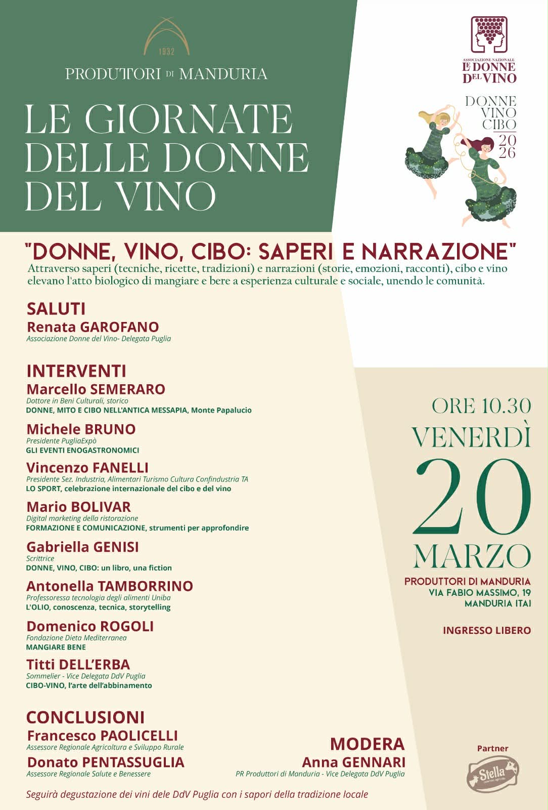 “Donne, Vino, Cibo” non è solo un tema culturale, ma una visione: mettere al centro la qualità, la sostenibilità e la cura delle comunità come risposta concreta alle fragilità del presente.