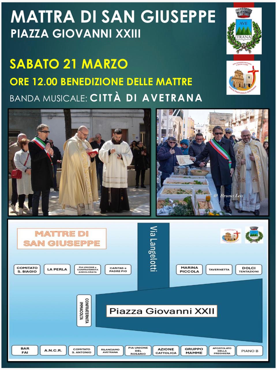 La benedizione e la degustazione delle Mattre avverrà sabato 21 marzo alle ore 12 in piazza Giovanni XXIII