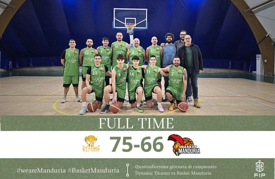 Seconda sconfitta stagionale per la capolista Basket Manduria nel campionato di Divisione Regionale 3: 66-75 sul parquet della vice capolista Dynamic Taranto
