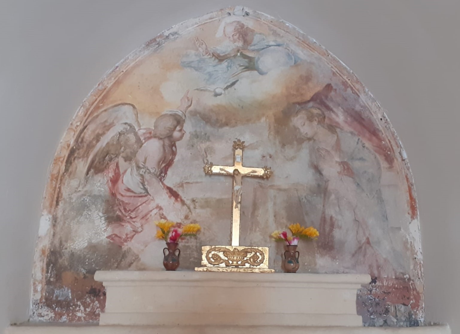 Durante l’ultimo restauro, è stata ripristinata sull’altare maggiore una pittura più antica, rinvenuta dietro la tela del Filotico. È una pittura di buona qualità, raffigurante anch’essa l’ “Annunciazione”. Maria è a destra, con lo sguardo rivolto verso il basso e le braccia aperte ad accogliere l’annuncio; indossa un abito di colore rosso scuro e il mantello di colore celeste. Di fronte alla Vergine è l’Arcangelo Gabriele, il cui braccio sinistro è proteso a indicare il Signore verso cui punta l’indice della mano sinistra. In alto, nel mezzo di una nube campeggia la figura di Dio padre benedicente, che osserva la scena sottostante, e la colomba dello Spirito Santo. Sullo sfondo si intravede un elemento vegetale.