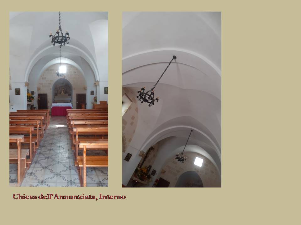 Alla fine del XIX secolo la Cappella dell’Annunziata versava in pessime condizioni strutturali: senza copertura, crollata la parte destra dell’edificio, rimaneva solo la facciata e la parete laterale sinistra. Nel 1895, sacerdote Salvatore Greco, un anonimo benefattore permise una completa ristrutturazione della Cappella, che assunse le caratteristiche attuali: venne rimossa l’antica «tettoia a tegole» e costruita l’attuale copertura a volta, la facciata fu abbellita con un frontespizio, venne ricostruita la parete destra, la sacrestia, la scala per i lastrici solari e un piccolo campanile[1] dotato di una campana.