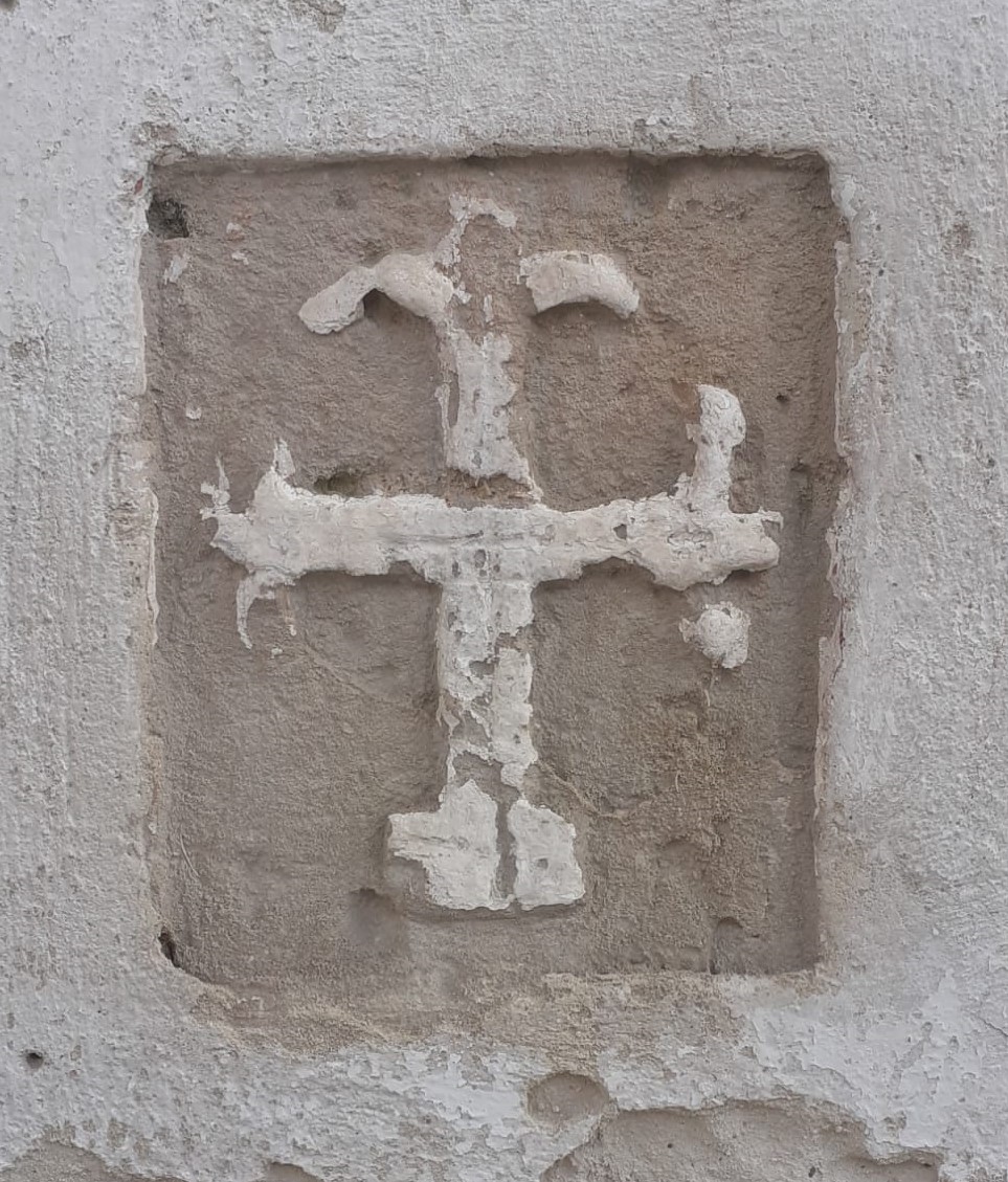 La piccola croce scolpita nella facciata della chiesetta, a destra del portale d’ingresso, presenta tre bracci a terminazione gigliata e il quarto poggiante su un basamento: potrebbe essere il simbolo dell’ordine cavalleresco dei Templari