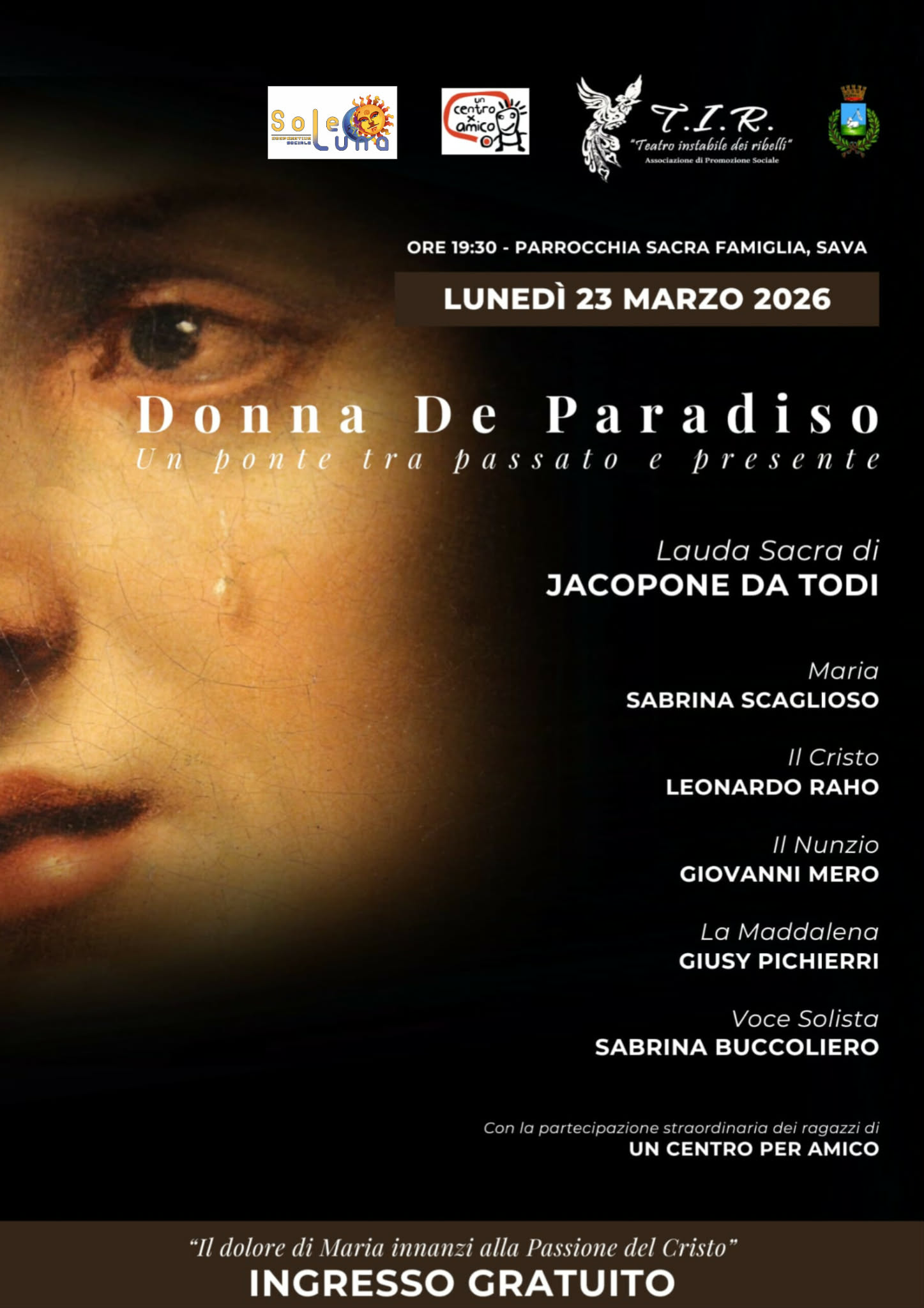 Lo spettacolo ispirato alla lauda drammatica di Jacopone da Todi esprime il dolore straziante di Maria ai piedi della Croce.