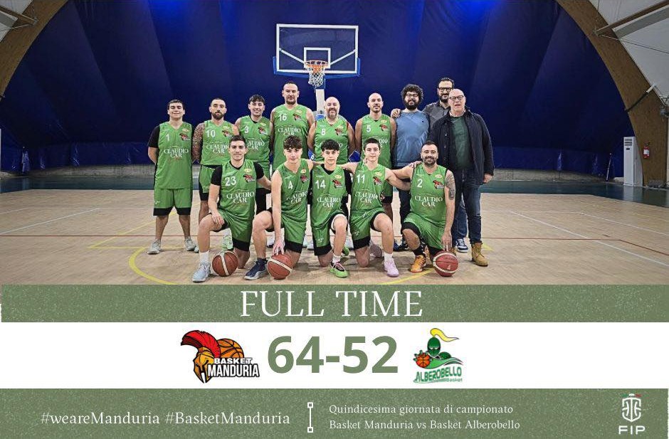 Il Basket Manduria batte il quotato Basket Alberobello e consolida il primato nella classifica del girone C della Divisione Regionale 3.