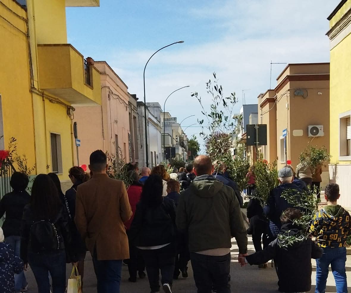 Note antropologiche — Il mondo contadino tradizionale ha reso la benedizione del ramo d’ulivo un momento fondamentale per la protezione del proprio spazio vissuto. Il ramo benedetto, con valore apotropaico, modulava strategicamente la sua protezione su vari livelli: in casa, dove veniva appeso sulla parete vicino al letto (accanto al crocifisso) oppure sul terrazzo; poteva essere offerto come simbolo di pace ai vicini e ai conoscenti con cui non si era in buoni rapporti o a coloro che ne erano sprovvisti. Ma, soprattutto, veniva portato nei campi, per proteggere e propiziare il raccolto del grano o della vite. Qui ci si inginocchiava a pregare: «Signore, come è stata benedetta questa oliva così fammi crescere il mio cranone e benedicimi il grano» (la recitazione di tale formula rimanda al principio della Magia Imitativa, basata sul fatto che il simile produce il simile: il principio di benedizione insito nella Palma estende la benedizione stessa alle piante, a garanzia di un abbondante futuro raccolto).