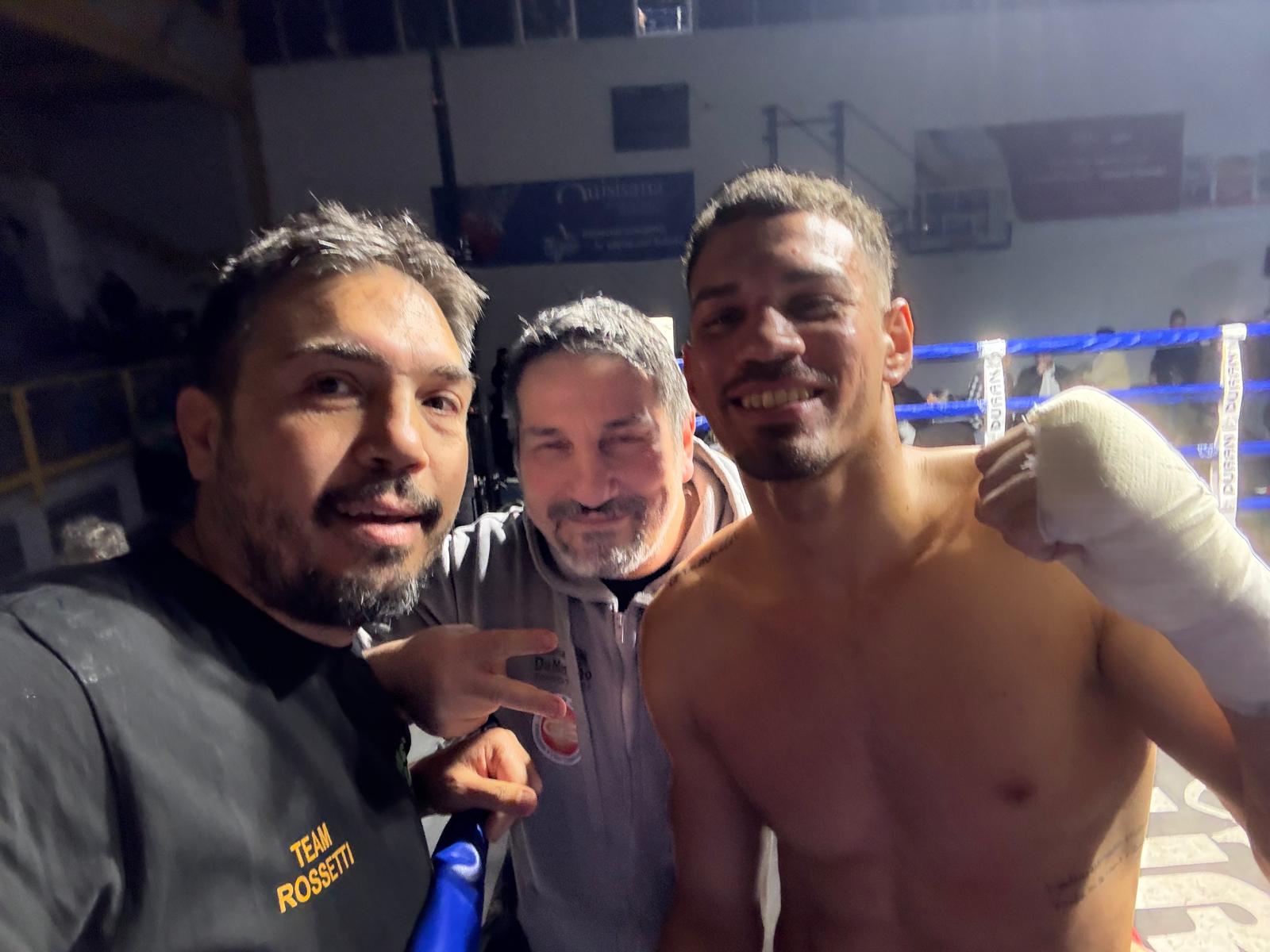 “Una tattica studiata perfettamente in palestra che Rossetti ha magistralmente messo in pratica nel match, grazie alle sue doti atletiche e alla determinazione che ha mostrato in questa occasione”, così afferma il suo coach Cataldo Quero, che lo ha seguito all’angolo con Emanuele Orlando, ex pugile della Quero-Chiloiro e attuale tecnico della Pugilistica Alto Reno Adduci, in supporto a Ferrara del team tarantino con suo figlio Tommaso Orlando, titolare della nazionale under19, e il pugile professionista attuale campione WBC del Mediterraneo pesi massimi, Angelo Morejon, il fratello di Giovanni Rossetti che si allena nella palestra di Emanuele Orlando a Porretta Terme.