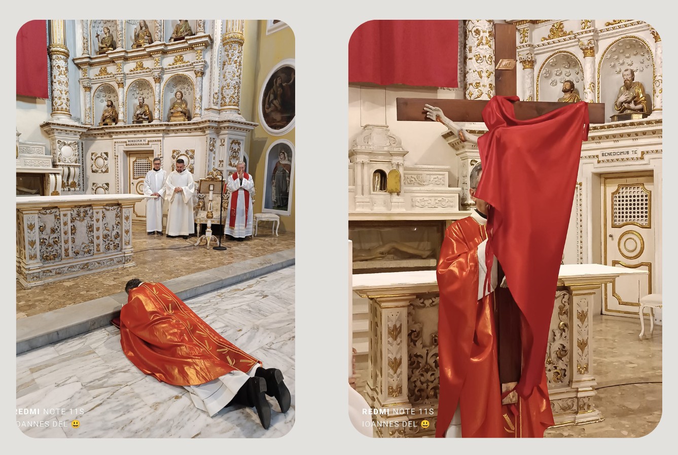 Accadeva che il sacerdote, affranto dal dolore per la morte di Cristo, ‘scordava’ come celebrare: cominciava la liturgia senza suonare il campanello, si guardava attorno smarrito, «comu na cosa ca stàunu sbalištrati [i sacerdoti] assìunu cussì li papi senza cu sonunu lu campanieddu, senza paramenti» (C.A.), si stendeva ai piedi dell’altare e, quando si ‘ricordava’, andava a riprendere la Croce (tolta dall’altare la sera del Giovedì Santo), procedendo lentamente in preghiera verso l’altare e scoprendo, progressivamente, il corpo del Cristo crocifisso.