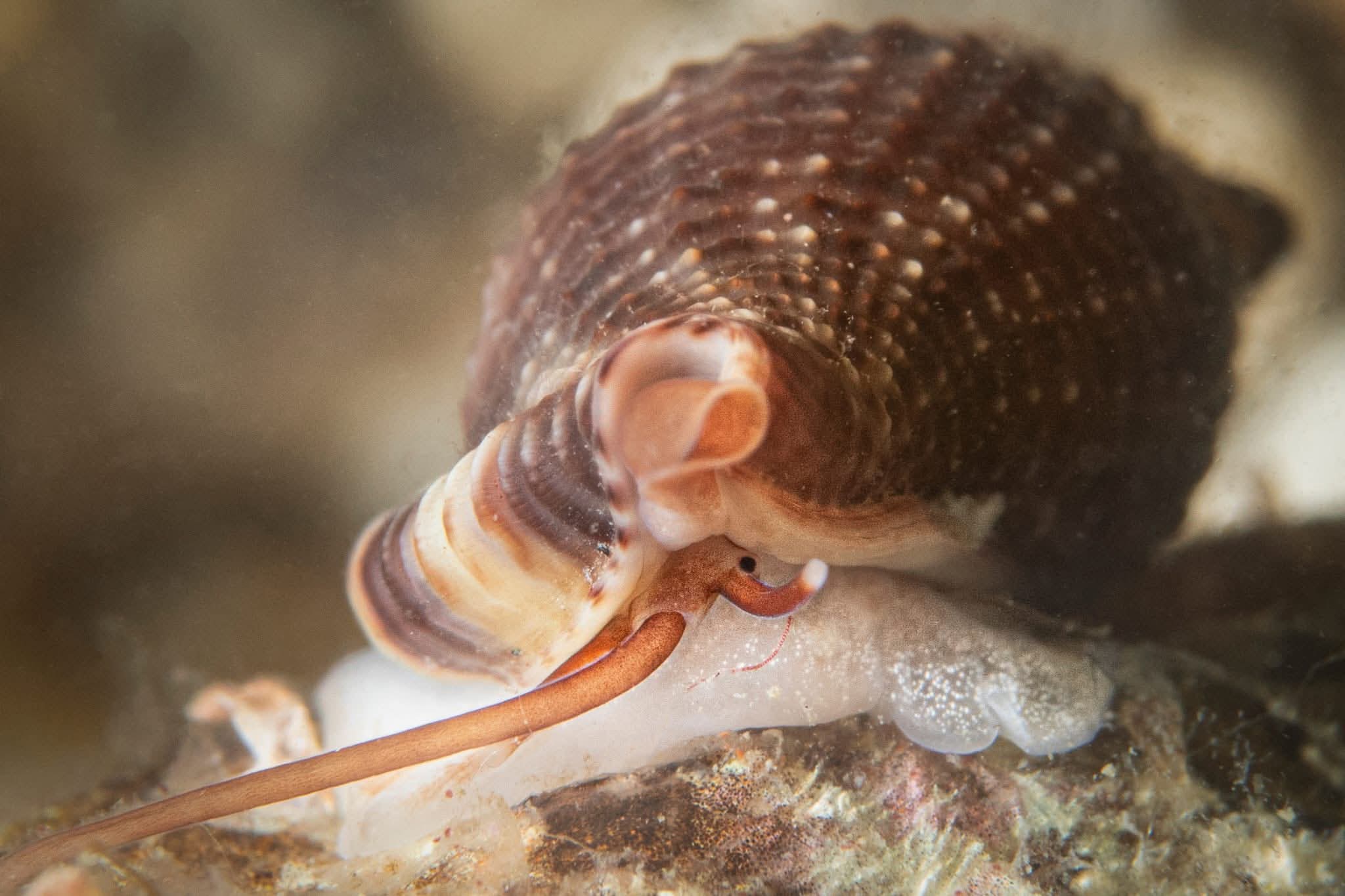 La lumaca vampiro, infatti, con l’olfatto individua il pesce più vicino e lo attacca nel sonno, succhiando il suo sangue grazie a una lunga proboscide flessibile. Una volta sazia torna a nascondersi, lasciando il pesce stordito ma vivo… fino al prossimo pasto!