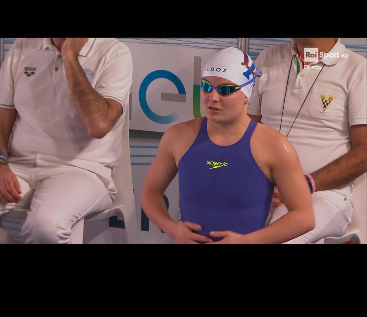 1’02”48 il tempo della nuotatrice savese nella batteria vinta da Gastaldi (Centro Sportivo Carabinieri); seconda Musetti (Circolo Canottieri Aniene); terza Caprai (Fiamme Oro).