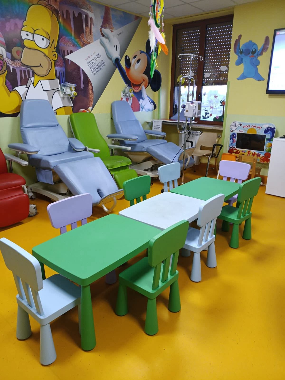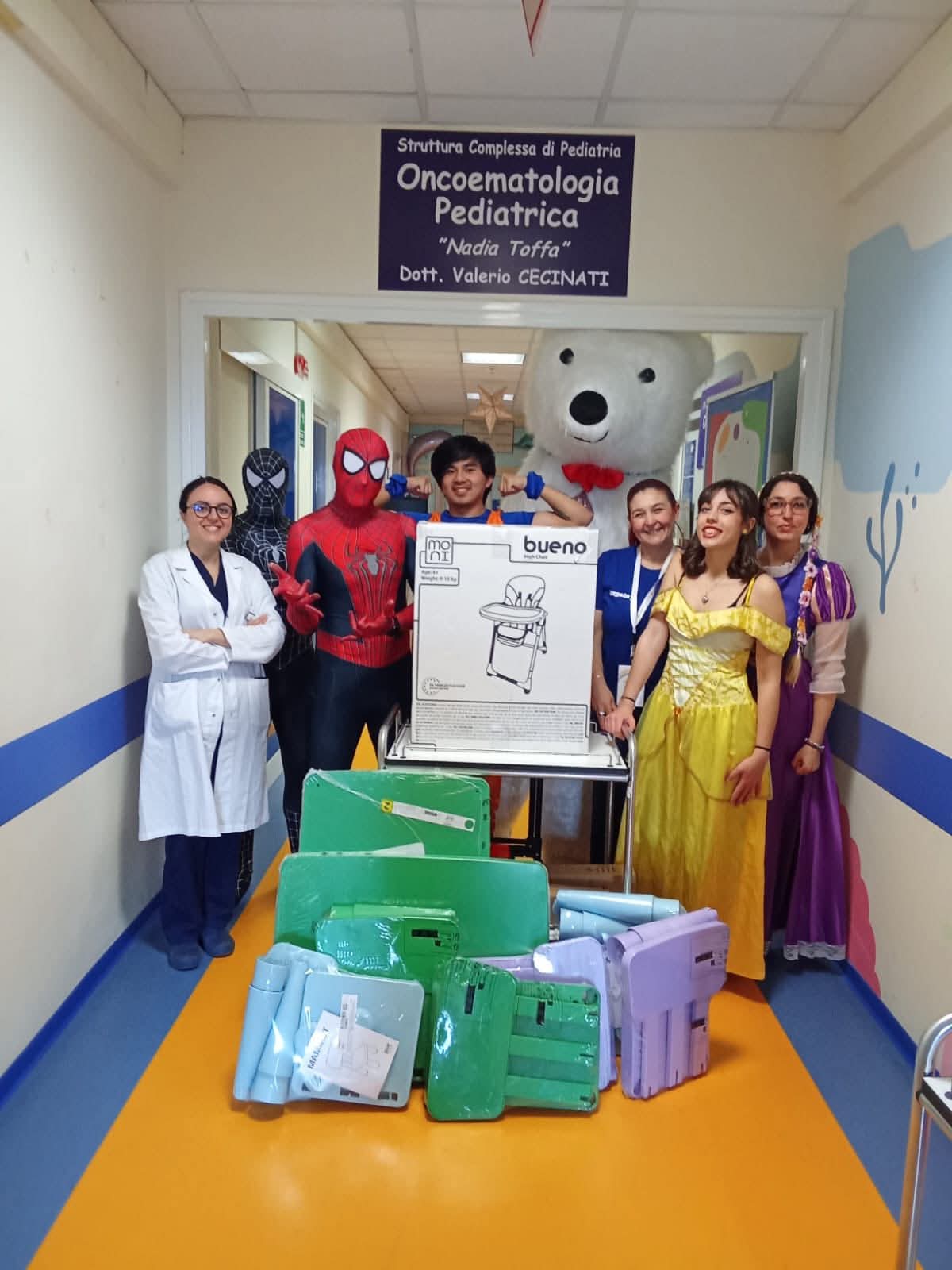 Piero, Giovanna, Daniel, Andrea e Roberto, contagiati dalla generosità dell’amico Spiderman avetranese, hanno donato tavolini e sedioline destinate a rinnovare gli arredi del day hospital e un seggiolone destinato esclusivamente al reparto di degenza dell’Oncoematologia Pediatrica.
