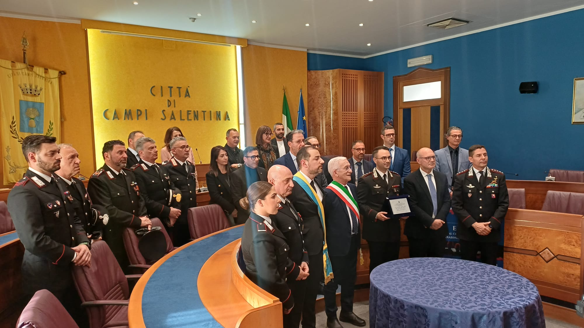 “Il Comune di Campi Salentina al Comando Compagnia Carabinieri di Campi Salentina per il quotidiano impegno a tutela della comunità, quale esempio di dedizione e devozione verso la cittadinanza e le istituzioni”.