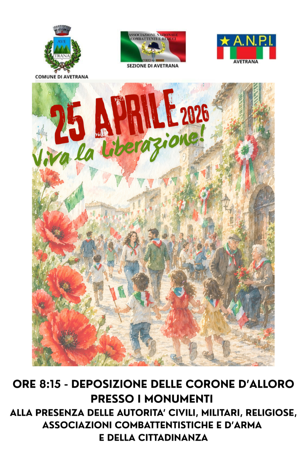 Il Comune di Avetrana, in collaborazione con ANPI Avetrana e ANCR Avetrana, organizza per il 25 Aprile una manifestazione per ricordare la Giornata della Liberazione.