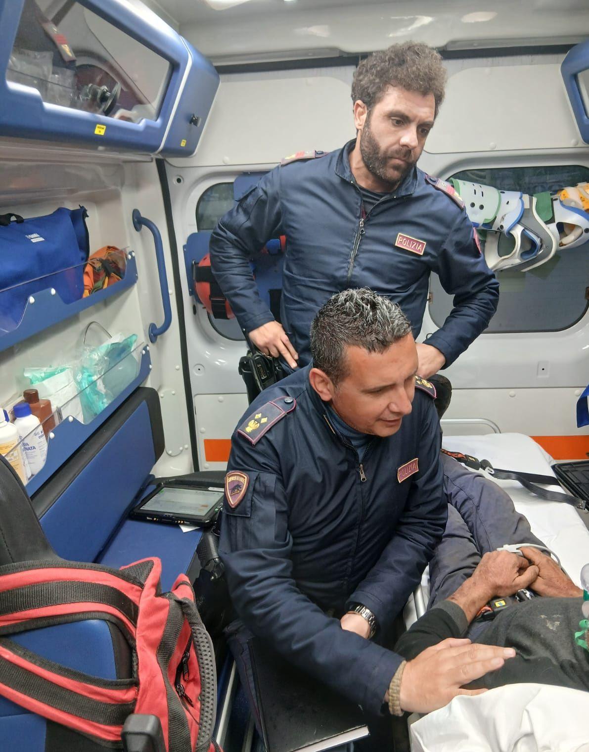 Dopo aver individuato alcune tracce all’interno della fitta vegetazione, gli agenti si sono addentrati nella macchia mediterranea. Nonostante le difficoltà del terreno, i richiami degli operatori hanno ottenuto risposta: una voce flebile ha guidato i poliziotti fino a un groviglio di rovi dove l’uomo si era nascosto, rannicchiato e in evidente stato confusionale.