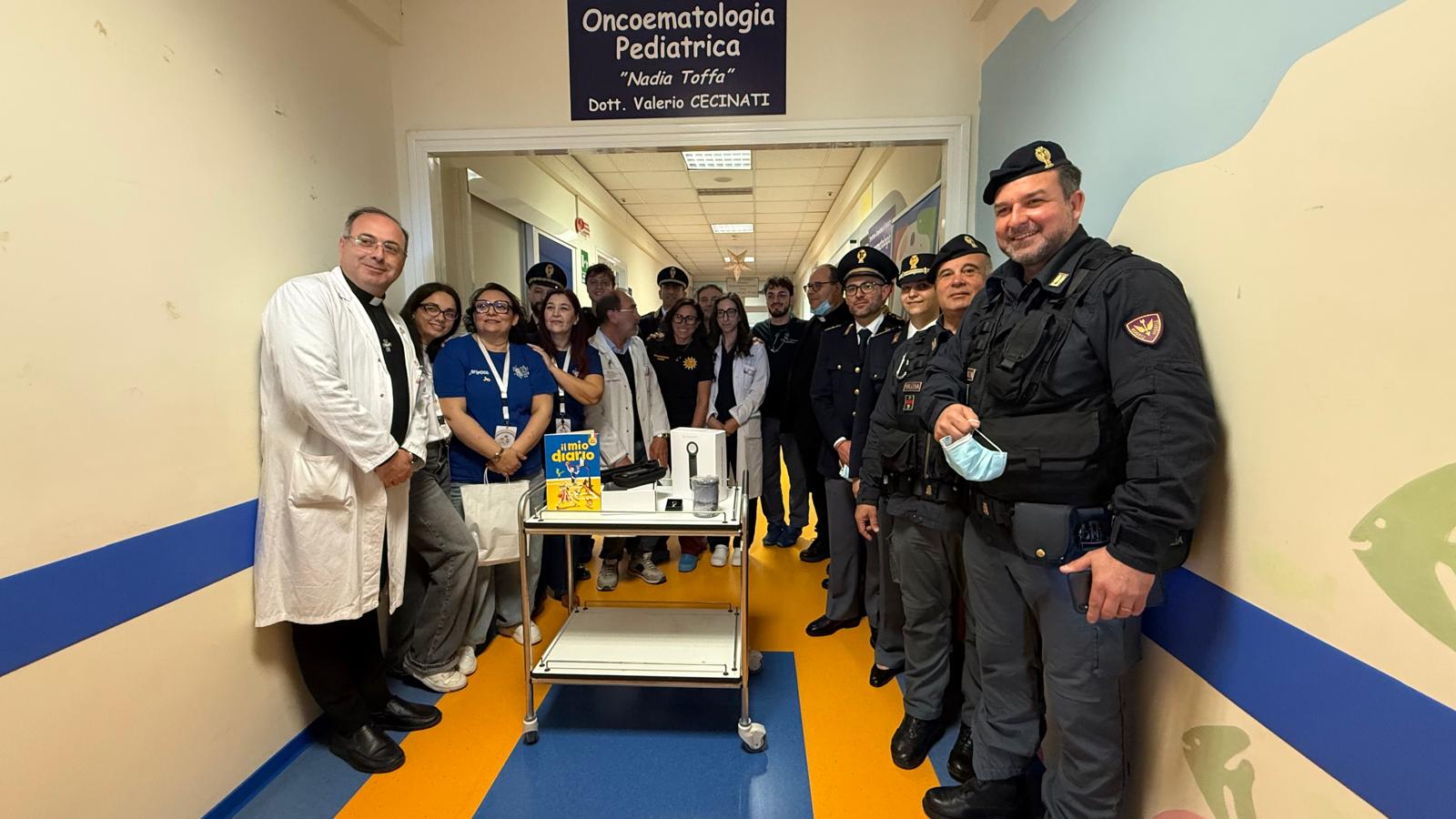 Questa mattina il XV Reparto Mobile Taranto della Polizia di Stato ha effettuato una donazione a favore dei piccoli pazienti della struttura di Oncoematologia Pediatrica “Nadia Toffa” e pediatria del Santissima Annunziata di Taranto.