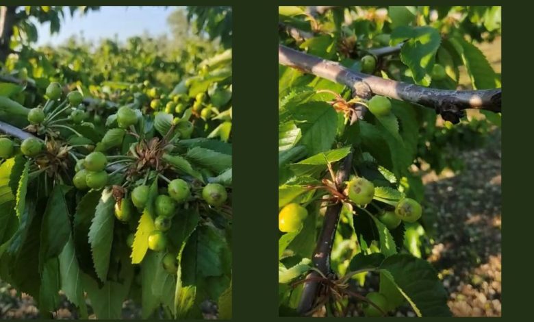 Un evento estremo che si inserisce in una fase già delicata e che ha avuto un impatto pesantissimo sulle ciliegie, con i frutti in pieno sviluppo. I chicchi di grandine hanno causato la caduta dei frutticini e danneggiato quelli rimasti, compromettendo qualità e raccolto.