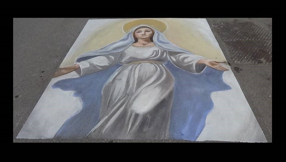 Una raffigurazione pittorica di figure sacre, soprattutto madonne, realizzata con gessetti, pigmenti naturali o altro materiale povero, su un superficie esterna pubblica (sagrato di una chiesa, strada, marciapiede), realizzata in occasione di feste patronali, rievocazioni storiche e fiere
