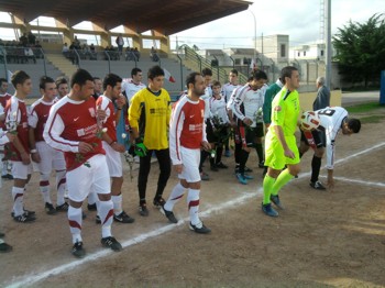 donate poi prima dell’inizio della gara sotto la tribuna in memoria della piccola Sarah Scazzi, un bellissimo gesto apprezzato da tutti i dirigenti locali e dal numeroso pubblico presente.La gara appare da subito noiosa e bisogna attendere il 18’ per il primo sussulto: l’Avetrana trova il gol del vantaggio. G. Gallone, con un tiro forte e preciso dai 30 metri, sorprende la squadra leccese.