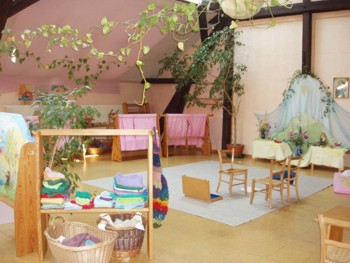 Le scuole materne di ispirazione steineriana sono impostate con semplicità, nella convinzione che al bambino sia sufficiente un ambiente sereno, con stoffe che diventano mantelli, giocattoli fatti a mano e personale docente che non urla per farsi ubbidire.