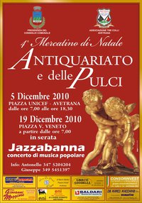 piazza Vittorio Veneto, ad Avetrana, su iniziativa dell’associazione Tre Colli di Avetrana, si terrà la quarta edizione del Mercatino di Natale, mercato di antiquariato e delle pulci.In serata concerto di musica popolare con il gruppo Jazzabanna.