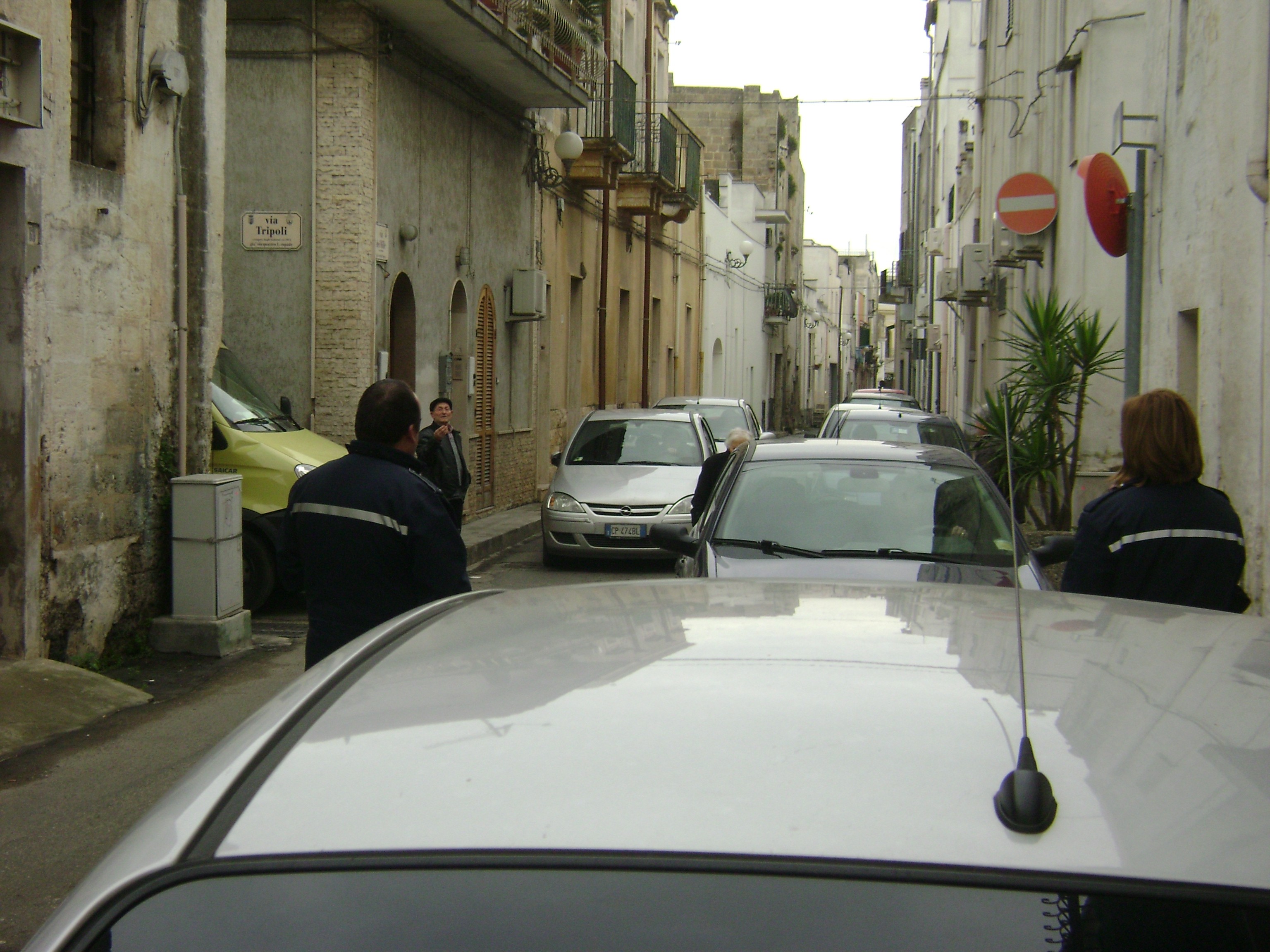 documenta è la situazione che si è venuta a creare in via dei Mille: una vettura mal parcheggiata su strisce gialle in divieto di sosta che impedisce la svolta di un furgone proveniente dalla via Tripoli; i clacson impazziscono; i VV. UU., intervenuti, si adoperano affinchè l’auto sia rimossa chiedendo anche l’intervento del carro-attrezzi; fin qui tutto regolare, tranne che per un piccolo particolare. Ma sarà proprio “piccolo”? Da via dei Mille si vede defluire una marea di auto che hanno violato (e continuano, purtroppo, a farlo nella strana indifferenza di….) la segnaletica del divieto di transito, circolando tranquillamente in direzione vietata fors’anche anche con la “benedizione” dei Vigili. Una prima riflessione sorge spontanea: ci si chiede se questo atto non sia una palese omissione o, comunque, frutto di cecità. Sta di fatto, però, che questa situazione tragicomica mette a rischio la salute ed incolumità cittadina, fomentando nei già numerosi indisciplinati automobilisti astio nei confronti di pedoni e residenti che legittimamente ed a ragion veduta reclamano il proprio diritto a vivere tranquillamente e a respirare aria meno inquinata, in relazione il tutto ovviamente alle particolari e chiarissime caratteristiche della piccola e misera via dei Mille (che pare non siano state ponderatamente valutate dall’attuale Amministrazione che – non si sa – come mai l’abbiano indirettamente messa in condizione di divenire una “grande” strada quasi principale. Siamo mica a Milano! Sarà stata assenza di diligente studio e cura del caso? Indifferenza?).