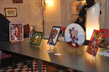 sono attualmente in esposizione presso Palazzo Selvaggi, nella centralissima piazza Garibaldi già in preda all’art attack del Natale.Si tratta di Francesco Selvaggi, Margherita Margherito, Piero Arnò, Maddy Arnò, Silvana Filograno alias Siberiana, Maria Rosa Fanuli, nostra signora della rock