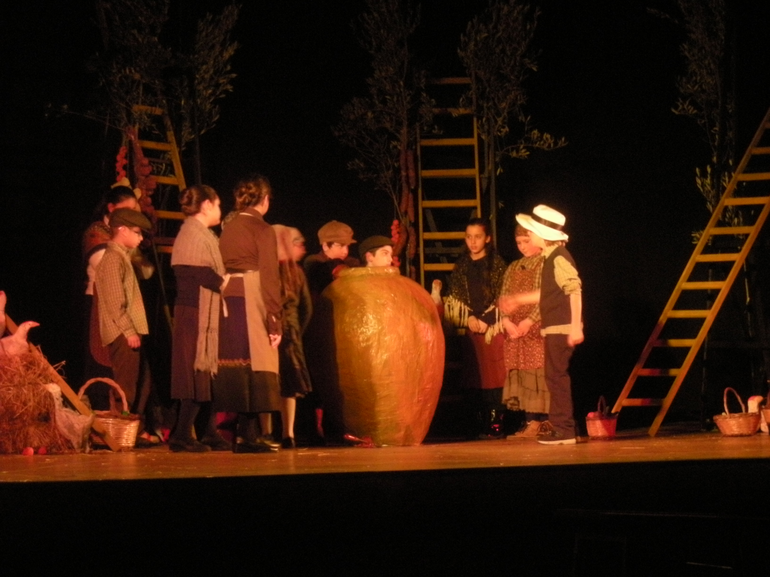 musical, liberamente tratto da quell’opera letteraria, e portata in scena, con grande successo, dagli alunni delle classi 5 delle sezioni A, B, E e F a conclusione del progetto PON “Tutti in scena”.Ben quattro gli esperti esterni coinvolti in questo progetto: Gianluca Fumarola, che ha curato la regia, Ferruccio Cosimo Guarini, che ha curato le performances, Marisa Di Mitri che ha curato le coreografie, e Mario D’Amico che ha curato le scenografie. Guidati dagli esperti e dalle rispettive maestre (Maria Leonarda Sammarco, Teresa Crisostomo, Giulia Olivieri e Chiara Copertino), gli alunni, oltre ad imparare a recitare le loro parti, sono stati attivissimi nel realizzare le coreografie in cartapesta.