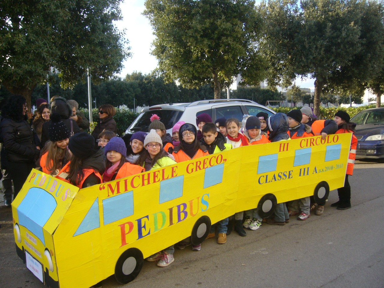 Un’esperienza, che riteniamo unica per Manduria è stata fatta il giorno 25 gennaio 2011; a conclusione del progetto è stato realizzato un “Pedibus”, che è un autobus che va a piedi: gli alunni si raccolgono ad un capolinea e, indossato il giubbino catarifrangente, si recano a piedi a scuola percorrendo un tragitto, precedentemente concordato e che prevede regolari fermate.