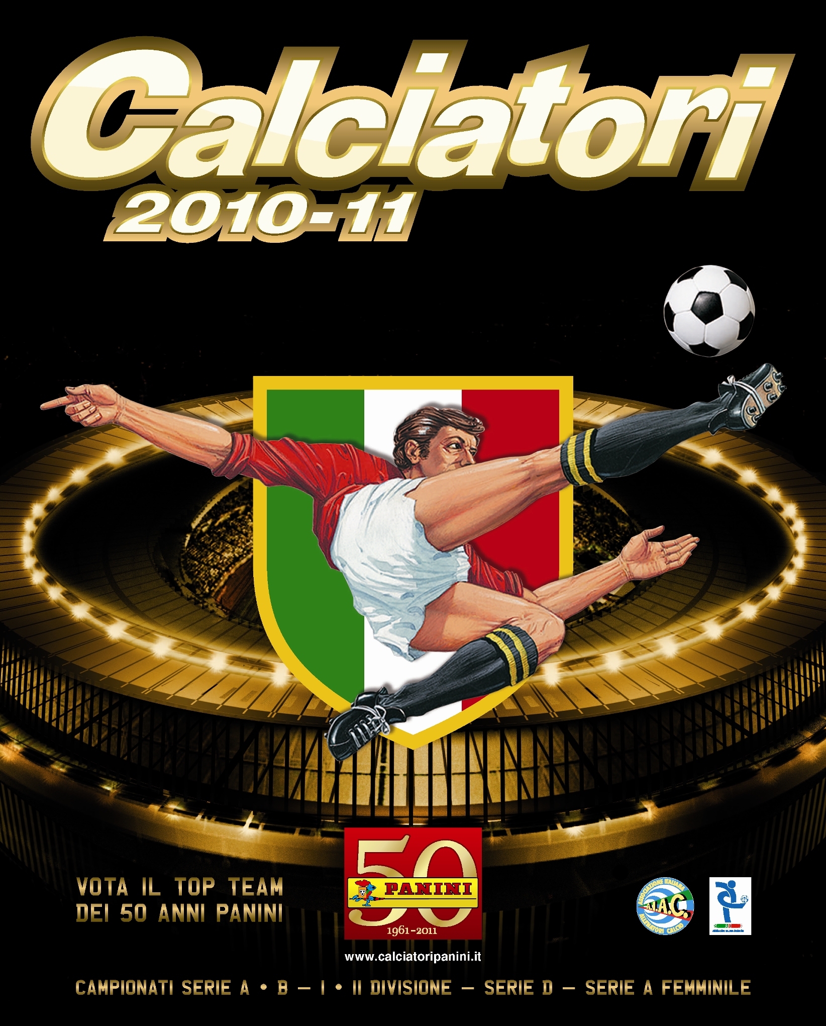La collezione “Calciatori 2010-11” è la 50esima edizione della collezione di figurine Panini sul calcio italiano. Comprende 738 figurine adesive sui giocatori di serie A e B, I e II divisione di Lega Pro, Serie D e Serie A femminile. Queste figurine possono essere raccolte in un album di 128 pagine. Nella collezione, ogni club di Serie A è rappresentato dalle figurine di 20 giocatori, oltre a quella di allenatore, squadra schierata e scudetto. Ad ogni club sono dedicate 4 pagine dell’album, le prime due caratterizzate dalla foto in dettaglio della maglia ufficiale e le altre due da un bello scorcio della tifoseria allo stadio. Ogni squadra di Serie B ha invece 18 giocatori (in figurine fustellate contenenti 3 giocatori cadauna), oltre a squadra schierata e scudetto. Ai team di I Divisione è dedicata la figurina di squadra schierata e scudetto, per le squadre di II Divisione e di Serie D lo scudetto e per i club di Serie A Femminile la figurina della squadra schierata. Importante novità della collezione Calciatori 2010-11 è il grande concorso “Top Team Panini 50”, che avrà lo scopo di selezionare i 18 calciatori (11 titolari e 7 riserve) preferiti dal pubblico dei tifosi italiani tra i campioni che sono stati raffigurati nelle 50 edizioni della collezione “Calciatori”. Tutte le informazioni su www.calciatoripanini.it.
