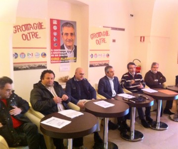centrosinistra – Partito Democratico, Italia dei Valori, Unione di centro, Io Sud e Movimento Unità dei Cattolici per il Sociale - hanno presentato presso il Caffè Patrizia, a Grottaglie, il progetto "Grottaglie Oltre".