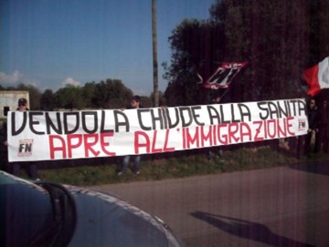 "Come a Lampedusa, anche a Manduria Forza Nuova è l'unica voce di dissenso rimasta in Italia verso quest'ondata selvaggia di immigrazione. Ci siamo schierati fin da subito contro l'entrata in territorio italiano da parte degli immigrati. Presto questa diventerà una vera e propria invasione. Anche qui, a Manduria, non è ancora ben chiaro il numero preciso di immigrati che questa tendopoli dovrà ospitare, come non è chiaro la funzionalità che dovrà avere, se centro di accoglienza o di controllo ed espulsione dei clandestini. Quello che è sicuro è che a pagarne le conseguenze saranno molto presto gli Italiani e l'identità Italiana tutta. Già nel primo pomeriggio, infatti, Manduria appariva come una città sotto assedio e la voce che già un primo gruppo di immigrati fosse riuscito a scappare diventava sempre più insistente. La nostra proposta di non installare le tendopoli e di rifocillare ed assistere gli immigrati in mare nell'attesa di rimpatriarli non è stata neanche presa in considerazione. Da Lampedusa a Predoi, passando anche per Manduria, Forza Nuova sarà presente con i suoi militanti per dare voce a tutti quegli Italiani traditi dalle promesse da marinaio del governo che, tardivamente e con l'utilizzo di mezzi inadeguati e insufficienti, assume il ruolo grottesco di chi pretende di svuotare il mare, armato di un bicchiere". "In realtà" - conclude la nota - le nostre posizioni sono le posizioni di tutti gli Italiani e di chi vuol salvare la propria Patria da questa vera e propria invasione straniera».