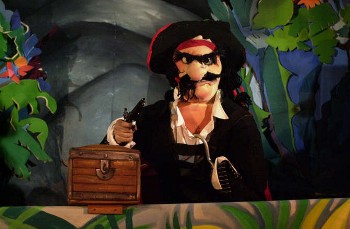 L’oro, l’argento, i gioielli, le perle, le leggende, i miti, le imprese più o meno titaniche dei padroni del mare, uomini senza paura alla continua ricerca della ricchezza e della libertà. Nelle vecchie casse dei burattini non poteva mancare il personaggio del “pirata” per tutto ciò che esso evoca: la mitologia del mare e le leggende delle gesta di questi uomini così conosciuti ma contemporaneamente così misteriosi.