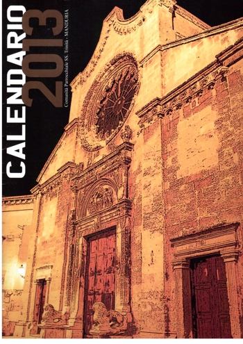 della SS. Trinità di Manduria. Un calendario dedicato all’Anno della Fede indetto dal Santo Padre Benedetto XVI, che contiene alcune scelte pastorali per l’anno 2012-13, notizie storiche sulla chiesa Madre e sulla catechesi della parrocchia stessa, oltre a immagini sulle principali attività dei vari gruppi parrocchiali.Tutto a colori, il calendario della chiesa Madre è sempre più atteso dall’intera città.