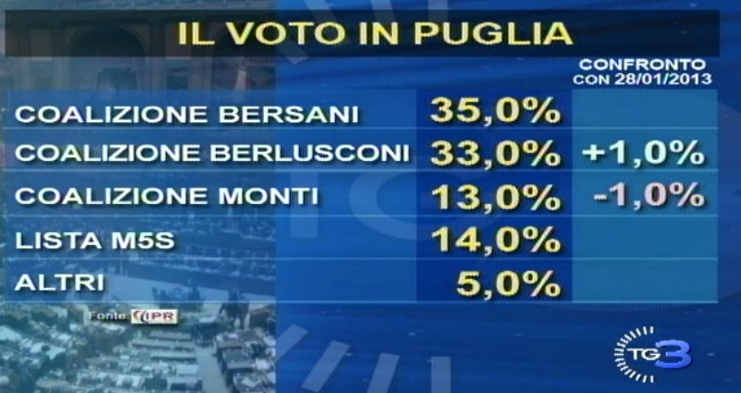 In Puglia, al Senato, il centrodestra sarebbe a due soli punti dal centrosinistra