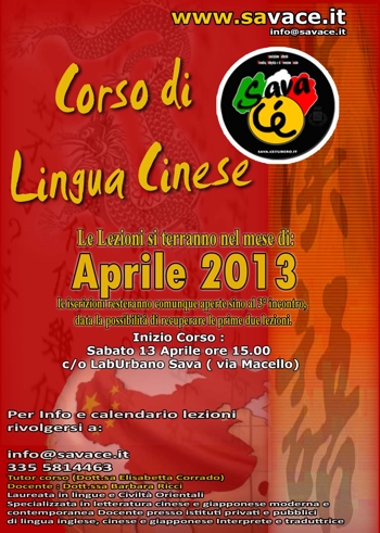Italia l’utilizzo delle lingue orientali, l’associazione “Sava Cè”, essendo principalmente un’associazione culturale, ha pensato di attivare un corso base di lingua cinese a Sava.