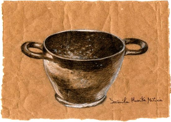 Oltre ai motivi sopracitati, il sottosuolo di Sava, sfruttando anche il fenomeno del carsismo con le sue naturali cavità, sarebbe stato interessato dall'esistenza di camminamenti sotterranei che, in alcuni casi, pare conducessero ai paesi limitrofi. Una ragnatela che collegava tra loro i paesi come Manduria, Uggiano Montefusco, Oria ed altri ancora come Taranto; così si racconta. Camminamenti utilizzati forse per sfuggire alle scorribande all'epoca delle invasioni dei turchi o, successivamente, rifugi utilizzati dai briganti. Si racconta anche di collegamenti tra il palazzo Baronale, che sorge sui resti di una precedente costruzione e la chiesa della Mater Domini per tutelare l'incolumità della Baronessa Ippolita Prato e potersi raccogliere in preghiera indisturbata. Di tutto ciò non c'è traccia tangibile se non i racconti dei nostri predecessori ma le origini del paese si possono far risalire ancora prima con presenza di una necropoli. Alcune tombe rinvenute anche con alcuni resti di corredo, come per esempio, uno Skyphos a vernice nera con doppia maniglia (che vediamo nella riproduzione dell'autrice, ndr), a seguito di lavori pubblici realizzati per le strade del paese; probabilmente di epoca ellenistica.