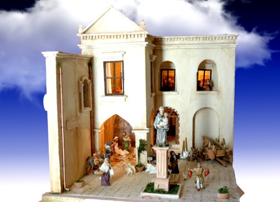 Infatti, Egli riproduce in miniatura con massima e certosina cura la visione prospettica degli edi-fici più importati di Maruggio, come ad esempio la facciata dell’ex Convento francescano e dell’annessa chiesa di Santa Maria delle Grazie o l’antica Torre dell’Orologio, ritenute adatte dall’artista maruggese a rappresentare la grotta della Natività di Gesù Bambino, fondendo così la trazione popolare cristiana di origine francescana con la storia religiosa e civile di Maruggio.
