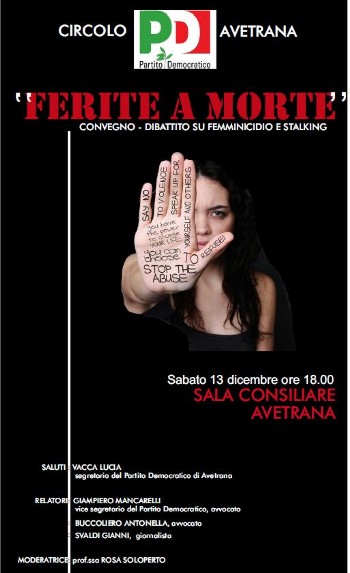 stalking, che, promosso dalla sezione di Avetrana del Partito Democratico, è in programma questa sera (sabato), alle 18, nella sala consiliare del Comune di Avetrana.
