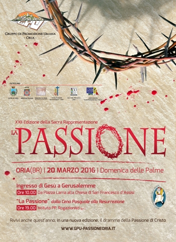 di Cristo” è annoverata oramai tra gli appuntamenti annuali e tradizionali della Città di Oria ed introduce di fatto, oramai da anni, i caratteristici e devozionali Riti della Settimana Santa a cui la comunità cittadina è legata da una particolare devozione.Questo Gruppo rappresenta la Città di Oria nell’Associazione Europassione per l’Italia ed Europassion, i sodalizi che a livello Nazionale ed Europeo rappresentano le varie sacre rappresentazioni che ogni anno, tra la devozione popolare,si svolgono in molte Città.