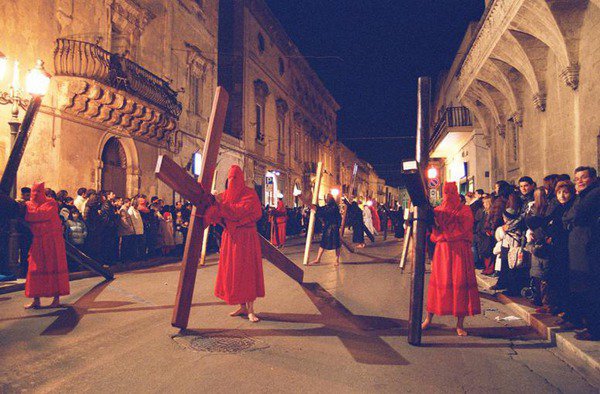 Un viaggio nell’Italia delle Settimane Sante. In Puglia tappa obbligata anche a Francavilla Fontana. Nella nostra regione, tra i riti più significativi e belli d’Italia, subito dopo i riti di Taranto, ci sono quelli di Francavilla Fontana, con la suggestiva processione dei Misteri del Venerdì Santo, caratterizzata dalla presenza dei crociferi, pellegrini scalzi e incappucciati che trascinano pesantissime croci.