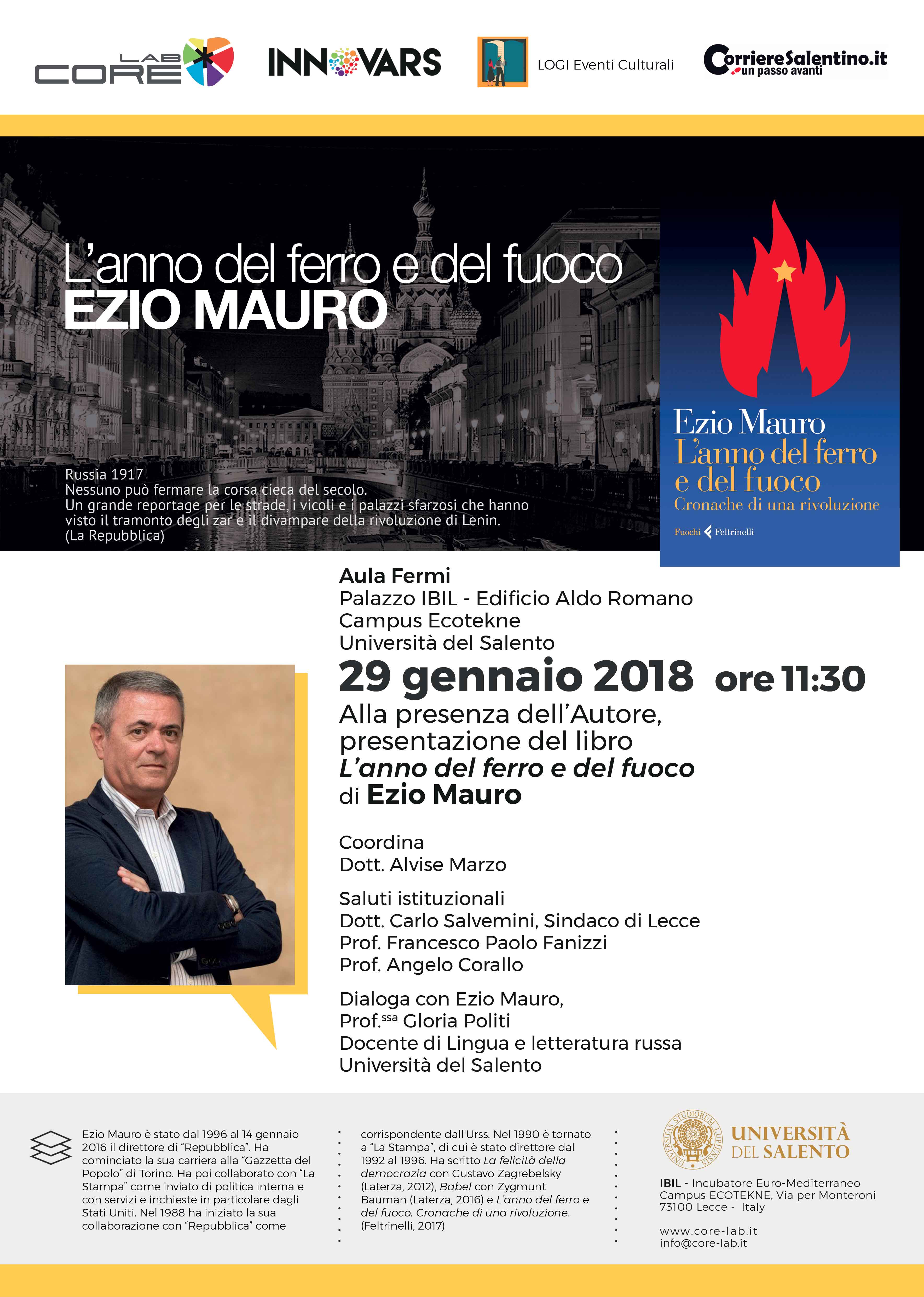 dell’Università del Salento l’incontro con il giornalista e autore Ezio Mauro, a Lecce per presentare il suo nuovo libro dal titolo “ L’anno del ferro e del fuoco – cronache di una rivoluzione” edito da Feltrinelli.