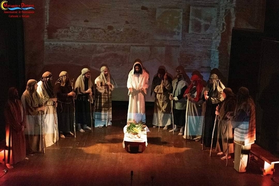 È stato un grande successo di pubblico la riproposizione, a distanza di 22 anni, del dramma sacro “Eucaristia e Redenzione”, ad opera del gruppo parrocchiale in collaborazione con la Filodrammatica Maruggese. Lo spettacolo, unico nel suo genere, si è tenuto presso il cine-teatro Impero, replicato per due volte (il 13 e 14 aprile) ed ha aperto i Riti della Settimana Santa.
