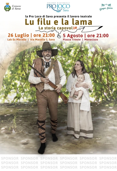 Le rappresentazioni del lavoro “Lu filu e la lama” saranno due: la “prima” avrà luogo venerdì (26 luglio) a Sava, presso il laboratorio urbano “ex macello”, con apertura del sipario alle ore 21. Vi sarà anche una replica: lunedì 5 agosto, nella piazza centrale di Monacizzo, nell’ambito della rassegna “Estate Torricellese 2019”.