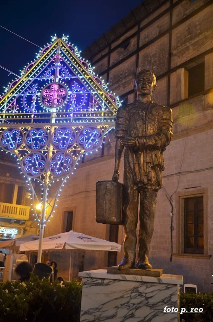 Martedì scorso è stata inaugurata a Fragagnano, alla presenza del sindaco, dell’autore e della comunità intera, la statua bronzea dedicata all’emigrante. Rappresenta un uomo che riproduce il malinconico e, allo stesso tempo, speranzoso gesto di prendere in mano la valigia “ di cartone “ per avventurarsi in cerca di fortuna, lontano dalla terra natia.