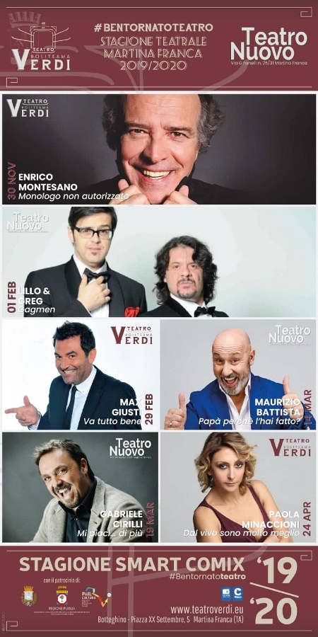 Ricco il calendario nella settimana di apertura ma ricchissimo il programma della stagione teatrale 2019/2020 organizzata in collaborazione con il Comune di Martina Franca, la Regione Puglia e il Teatro Pubblico Pugliese.