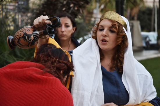 Location saranno città vecchia, castello Aragonese e palazzo Amati. Tra rievocazione e narrazione, tre momenti riguarderanno altrettanti periodi storici, frutto di una ricerca filologica. A cominciare dagli antichi cerimoniali del culto di Artemide quando, il giorno prima delle nozze, la sposa veniva accompagnata in processione notturna per un bagno di purificazione durante il quale prelevava acqua dalle sorgenti. E alcune testimonianze raccontano di rituali di passaggio che venivano praticati nel santuario di Saturo. Mentre la grazia femminile veniva espressa anche attraverso la danza e il canto.