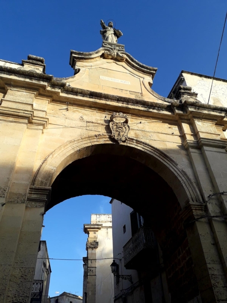 Arrivati in centro e dopo aver parcheggiato mi sono incamminata verso il borgo storico al quale si può accedere dalla porta San Pietro o dalla piazza antistante la chiesa di San Pietro e Paolo in stile barocco realizzata in pietra leccese con al suo interno affreschi che narrano episodi di vita dell’apostolo Pietro.