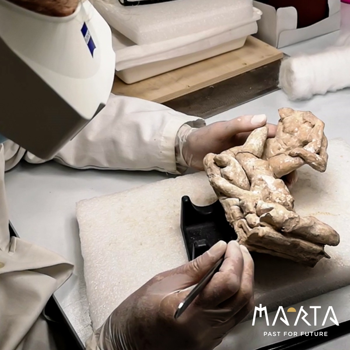 Non sappiamo se fu la censura, operata a quei tempi anche sui siti archeologici di Pompei che ritraevano scene erotiche nelle antiche dimore o nei lupanari, a preservare questa statuetta dai predatori di antichità, ma il progetto avviato dalla direttrice Eva Degl’Innocenti di conservazione preventiva, studio, catalogo e digitalizzazione dei reperti dei depositi del MArTA consente anche di effettuare ricerche più puntuali sulla contestualizzazione urbanistica e storica del reperto in quell’area di grande rilievo archeologico.