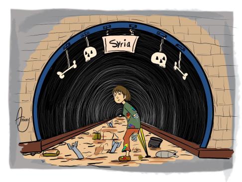 Nelle 31 illustrazioni digitali la trentasettenne artista e vignettista siriana racconta dieci anni di vita a Idlib, nel nord del Paese, in una regione particolarmente colpita dai raid